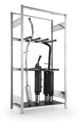 "metaDescription": "Abgasanlagenregal - Grundfeld, HxBxT 2000x1000x400mm, Trennarme, Einlagerung stehend, verzinkt",