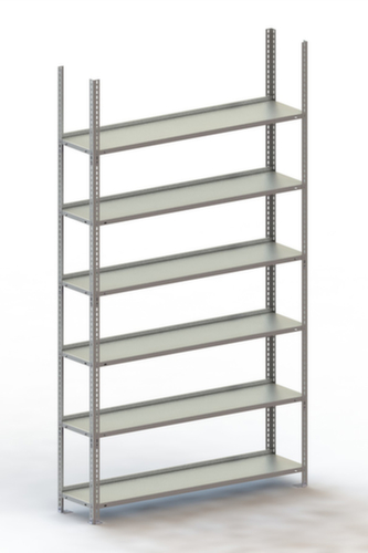 Die wichtigsten Maße des Aktenregals auf einen Blick:Verstauen Sie Aktenordner, Dokumente und anders Büromaterial bequem auf 6 Ebene(n) mit Stahlboden / 6 Ordnerhöhen. Diese bieten Platz für bis zu 90 Ordner. Fachhöhen je nach Einsatzzweck und Ihrem Bedarf im Raster von 25 mm verstellbar. Nutzung einseitig - zur Aufstellung an der Wand konzipiert. Konstruktion aus Stahl, Ständer mit korrosionsschützender Zinkbeschichtung,