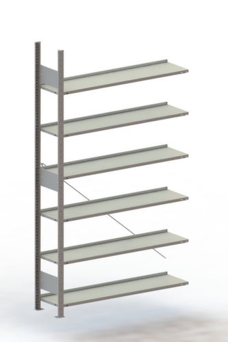 Die wichtigsten Maße des META Steckregals COMPACT auf einen Blick:6 Ebene(n) mit Stahlboden. Fachhöhen je nach Einsatzzweck und Ihrem Bedarf im Raster von 25 mm verstellbar. Nutzung einseitig - zur Aufstellung an der Wand konzipiert. Hohe Stabilität in Längsrichtung durch Diagonalverstrebungen. Konstruktion aus Stahl. Ständer mit strapazierfähiger Kunststoffbeschichtung in RAL7035 Lichtgrau.