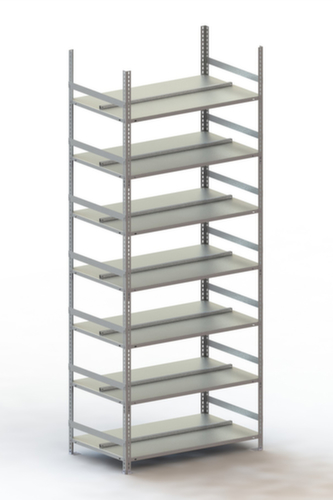 Die wichtigsten Maße des Aktenregals auf einen Blick:Auf 7 Ebene(n) mit Stahlboden / 7 Ordnerhöhen könne Sie Akten, Ordner und sonstiges Büromaterial optimal organisieren. Fachhöhen je nach Einsatzzweck und Ihrem Bedarf im Raster von 25 mm verstellbar. Ebenen mit hinterer Anschlagkante gegen das Herausfallen von Ordnern. Nutzung beidseitig - flexible Aufstellung frei im Raum möglich. Konstruktion aus Stahl, Ständer mit korrosionsschützender Zinkbeschichtung,
