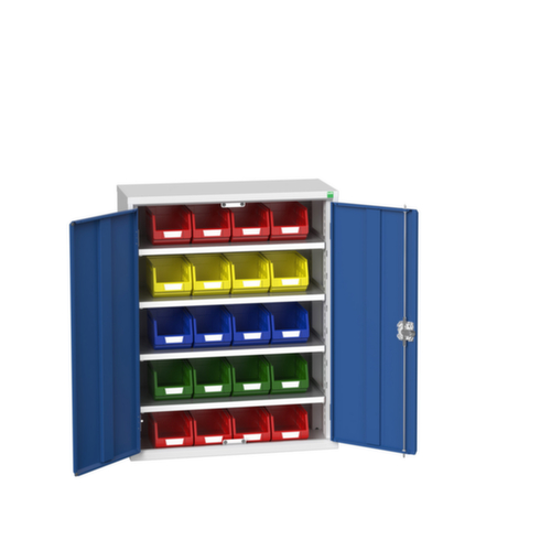 "description": "HxBxT 2000x1050x550mm, Korpus/Front RAL7035/RAL5010,21 Kästen, 6xStahlboden",