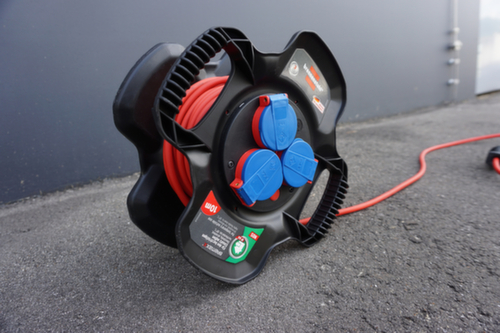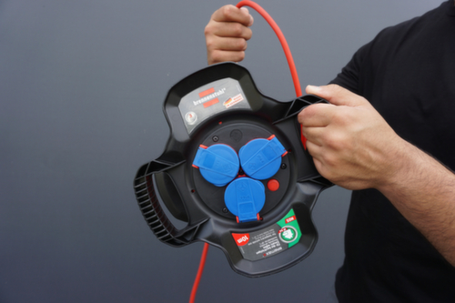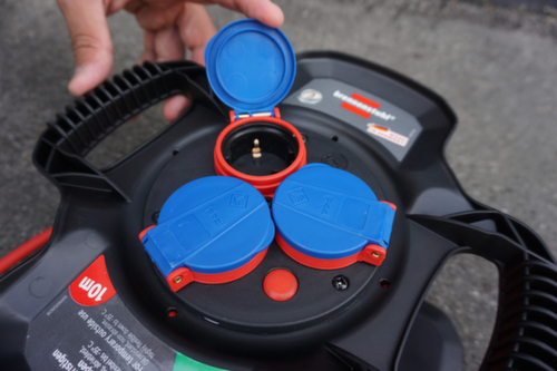 Ausgestattet mit Steckdosen mit selbstschließenden Deckeln zum Schutz vor Schmutz und Staub und Überhitzungsschutz. 3 Steckdosen. Gehäuse offen aus für Dauerbelastungen geeigneter Spezialgummimischung. Einfach zu tragen durch integrierten Tragegriff.
