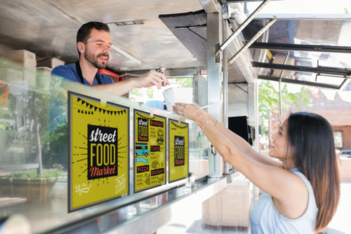 "longDescription": "<h2>Dokumentenhalter</h2><strong>für eine professionelle Präsentation</strong><br><ul><li><strong>Dokumente schnell gewechselt</strong> durch intuitives Einschub-System</li><li><strong>Umweltfreundlich</strong> - Rahmen aus Polypropylen</li><li><strong>Passt an jede Wand</strong> - Montage im Hoch- oder Querformat möglich</li></ul><br><strong>Sie haben die Wahl:</strong><br><ul><li><strong>Dauerhafte oder zeitlich begrenzte Nutzung</strong> - Rückseite selbstklebend oder magnetisch</li></ul>",