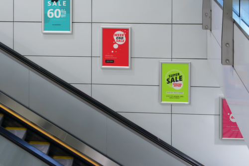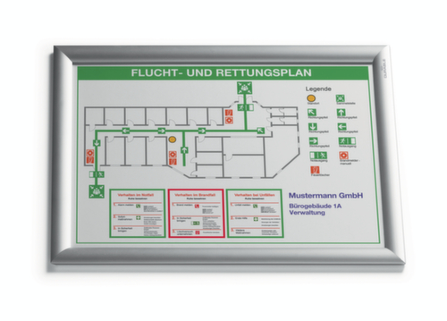 Rahmen aus Aluminium eloxiert in silber. Ecken auf Gehrung. Front aus UV-Schutzfolie. Rückwand aus schlagzähem Polystyrol. Rückseite mit selbsthaftenden Streifen. Lieferumfang: inklusive Montagematerial.