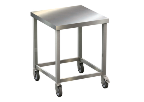 "longDescription": "<h2>Beistelltisch</h2><strong>zur Vergrößerung der Arbeitsfläche</strong><br><ul><li><strong>Hohe Beständigkeit</strong> - Platte aus matt geschliffenem Edelstahl</li><li><strong>Korrosionsgeschützt und stabil</strong> - geschweißte Edelstahlkonstruktion</li></ul><br><strong>Sie haben die Wahl:</strong><br><ul><li><strong>Mobil oder stationär</strong> - mit 4 Füßen oder 4 Lenkrollen, davon 2 mit Feststellern</li></ul>",