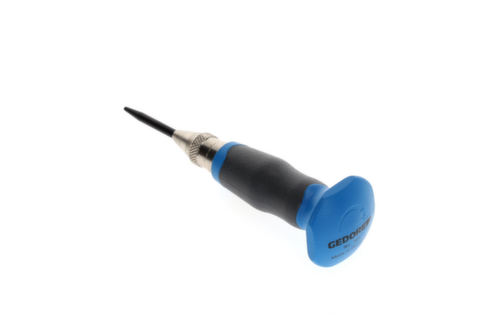 Vorderseite:|Automatik-Körner mit Spitze|Automatic centre punch with tip|60 - 130 N|101|Rückseite|Für Einhandbedienung|For one hand operation|Automatische Schlagauslösung durch Federmechanismus|Automatic impact release by spring mechanism|Schlagkraft zwischen 60 - 130 N stufenlos einstellbar|Impact power infinitely adjustable between 60 - 130 N|Mit 2-K Handschutz für komfortables und sicheres Arbeiten|With 2C handprotection for comfortable and safe working|Vernickelt|Nickel-plated|101|8722880