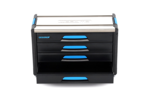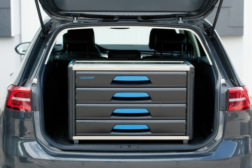 "longDescription": "4 Schubladen mit Vollauszug geegnet für GEDORE 1500 ES/1500 CT Module, Leichter und stabiler Alu-Kunststoffmix, Kompatibel mit Sortimo® Fahrzeugeinrichtungen und Ladungssicherung, Crash getestet, Tragkraft pro Schublade 60 kg, Maße: B 789 x T 396 x H 506 mm, Schubladeninnenmaß: B 660 x T 314 x H 89 mm<br>",