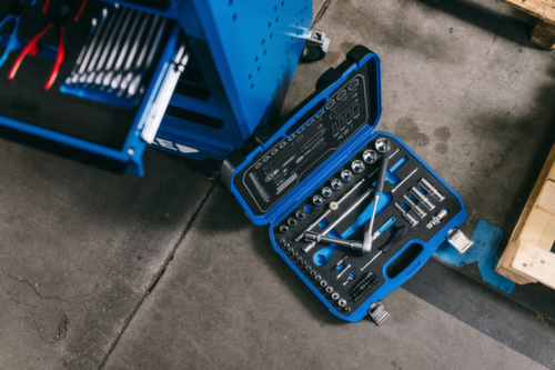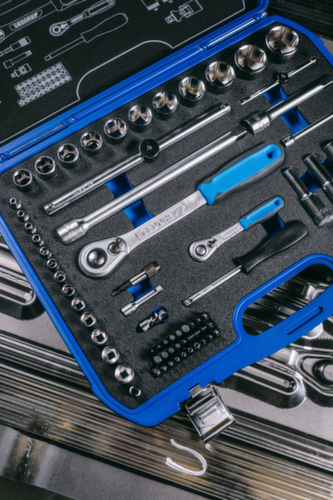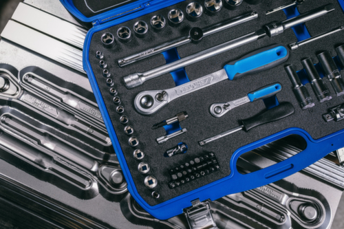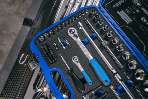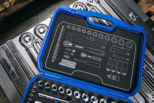 "longDescription": "Der neue GEDORE Kunststoff-Knarrenkasten ist für Industrie, Automotive wie auch den Heimwerker & Hobbyschrauber geeignet. Er ist mit einer schwarz/blauen Schaumstoff Check-Tool Einlage ausgestattet, die das Fehlen der Werkzeuge sichtbarer macht , Durch die tropfenförmige Kopfform der Umschaltknarren ist dieser Satz besonders gut für engste Schraubstellen geeignet , 1/4\" und 1/2\" Steckschlüssel-Sechskant Satz mit allen metrischen Größen von 4-32 mm sowie Bit-Satz für die gängigsten Antriebe wie Schlitz, PH, PZ, TX, XZN und Innen-6-kant, Die Umschaltknarren verfügen über einen 2-Komponenten-Griff, Umschalthebel und Druckknopfauslösung, welche ein komfortables, schnelles und sicheres Arbeiten zulassen, Abhängig von der Schlüsselweite können die Steckschlüsseleinsätze bis zu 375mm in der Antriebstiefe verlängert werden<br>",