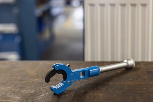 "longDescription": "Schlüssel für das Anziehen und Lösen von Euro-Konus-Hahnblöcken mit Nocken- und Sechskantverschraubung SW 30 mm, Kurze, flache Ausführung mit Ratschenfunktion, Hahnblöcke in Eck- oder Durchgangsform können ohne Probleme mit kurzen Ratschenbewegungen unter dem Heizkörper festgezogen werden, Kopfseitige Aufnahmemöglichkeit für 1/2\" Verlängerung. Die Verlängerung dient als Handgriff und sorgt gleichzeitig für ein höheres Drehmoment, Seitliche Aufnahmemöglichkeit für 1/2\" Verlängerung zum Arbeiten mit der Knarre vor dem Heizkörper, Aufnahmemöglichkeit für den Combi-Stufenschlüssel No. 3801 zum Einschrauben der 3/4\" Anschlussnippel, DBGM (Deutsches Bundes-Gebrauchsmuster)<br>",