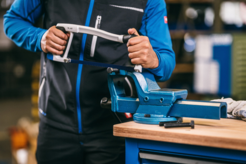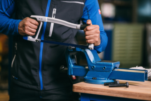 "longDescription": "Zum Zertrennen von Metallen und Stahl, Vielfältig einsetzbare und robuste Metall-Bügelsäge mit Verstellmöglichkeit, Um dem jeweiligen Einsatzzweck bestmöglich gerecht zu werden, kann das Sägeblatt sowohl senkrecht als auch um 40° abgewinkelt eingesetzt werden, Praktische, werkzeuglose Spannfunktion des Sägeblatts durch blaues Spannelement im Handgriff, Unverlierbare Spannstifte fixieren das Sägeblatt, Ergonomisches Arbeiten und Langlebigkeit werden gewährleistet durch die Kombination des leichten Aluminium-Bügels mit einem soften, abgewinkelten Handgriff, Bimetall-Sägeblatt 407 A<br>",