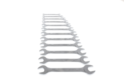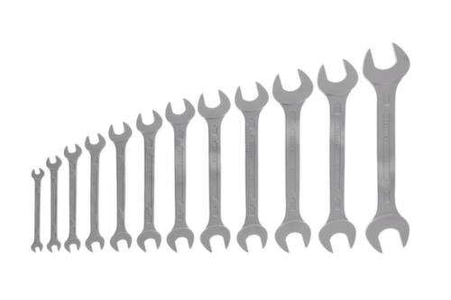 "longDescription": "Gängigste Größen im Set, Ausführung nach DIN 3110, ISO 3318, ISO 1085, ISO 10102, Mit flachen Köpfen, Blendfreie, mattierte Oberfläche, Maul: präzise auf exaktes Nennmaß geschliffen für optimale Kontaktflächen, Sicherer Griff durch schlanken Profilschaft, Überbelastung wird durch Verformung angezeigt, Hochwertige Industriequalität für harte Dauerbeanspruchung, Chrom-Vanadium-Stahl 31CrV3, verchromt<br>",