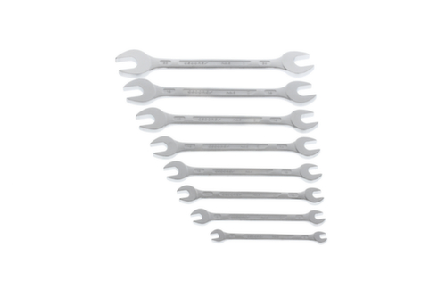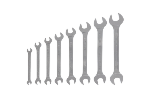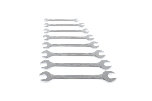 "longDescription": "Gängigste Größen im Set, Ausführung nach DIN 3110, ISO 3318, ISO 1085, ISO 10102, Mit flachen Köpfen, Blendfreie, mattierte Oberfläche, Maul: präzise auf exaktes Nennmaß geschliffen für optimale Kontaktflächen, Sicherer Griff durch schlanken Profilschaft, Überbelastung wird durch Verformung angezeigt, Hochwertige Industriequalität für harte Dauerbeanspruchung, Chrom-Vanadium-Stahl 31CrV3, verchromt<br>",