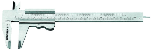 "longDescription": "Ausführung nach DIN 862 Form A 2, Mit Kreuzschnabel, angeschliffenen Schnabelenden, Tiefenmaß und Momentfeststellung, Mit Millimeter und Zoll-Einteilung, Nonius 1/20 und 1/128\", In Ledertasche<br>",