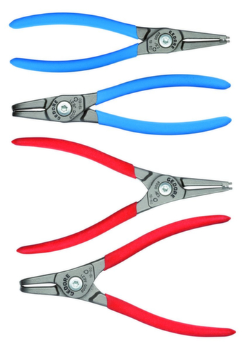 "longDescription": "Praktische Satzzusammenstellung in umweltfreundlicher Kartonverpackung, Eingedrückte Spitzen aus hochverschleißfestem Wälzlagerstahl, Verwindungshemmende Spitzengeometrie, Besonders für schwer zugängliche Platzverhältnisse geeignet, Für Innen- und Außensicherungsringe, Mit geraden und 90° gewinkelten Backen<br>",