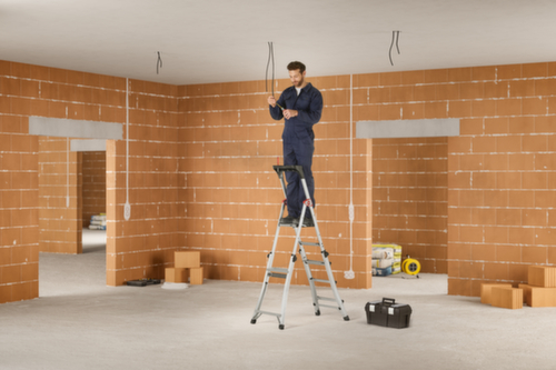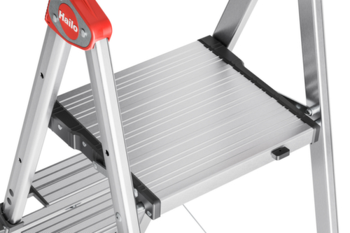 Die wichtigsten Maße der Hailo Leiter TopLine TL100 auf einen Blick:Geklappt Höhe x Tiefe 1430 x 140 mm. Sichere Anwendung durch Sicherheits-Verriegelungssystem der Teleskopelemente mit farbigem "Lock/Unlock"-Indikator. Ausgestattet mit Ablageschale mit unterschiedlich großen Abstellfächen für (Farb-)Dosen. Ablageschale aus Kunststoff. Rutschsichere Kunststofffüße am Holmende. Aus Aluminium, Holme eloxiert. Das Verschmutzen der Hände wird dadurch verhindert. Gleichzeitig ermöglicht die eloxierte Oberfläche eine leichte Reinigung. Belastbar bis 150 kg. Maße aufgestellt: Höhe x Breite x Tiefe 1730 x 520 x 1010 mm. Gewicht 8,8 kg.