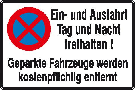 "value": "absolutes Halteverbot/\"Ein- und Ausfahrt Tag und Nacht freihalten! Geparkte Fahrzeuge werden kostenpflichtig abgeschleppt\""