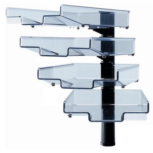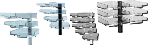 "description": "360° drehbar, mit bis zu 6 Ablagen, Ablagen transparent, Fuß in verschiedenen Farben",