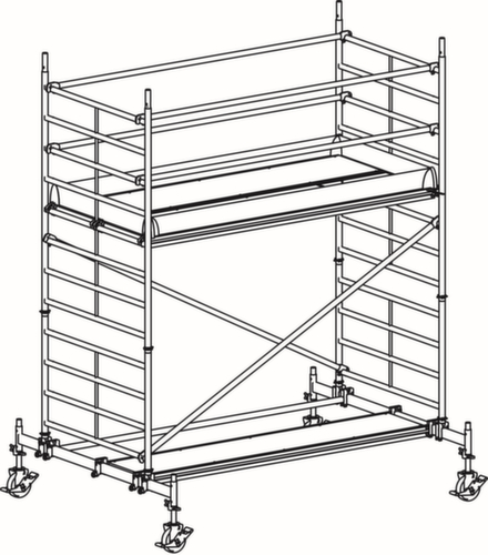 "description": "Reich H 9,6m, Gerüst H 8,82m, 4 Bühne(n), m. Luke, Bühne BxT 2950x1300mm, Alu",