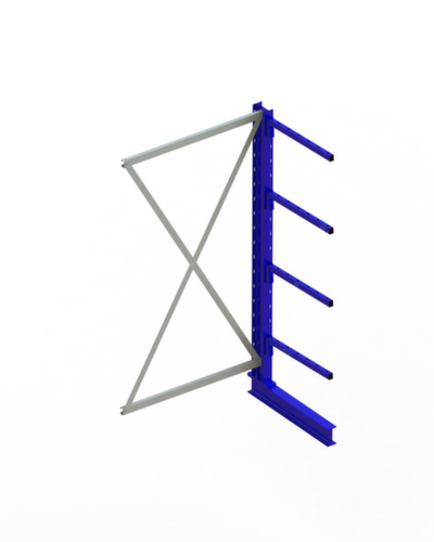Die wichtigsten Maße des META Kragarmregals Multistrong light auf einen Blick:Nutzung einseitig - zur Aufstellung an der Wand konzipiert. 5 Lagerebenen. Traglast je Arm 140 kg. Fachhöhen je nach Einsatzzweck und Ihrem Bedarf im Raster von 100 mm verstellbar. Nutztiefe 600 mm. Konstruktion aus Stahl. Ständer in RAL5010 Enzianblau. Kragarme in RAL5010 Enzianblau.