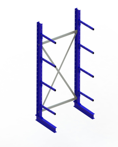 Die wichtigsten Maße des META Kragarmregals Multistrong light auf einen Blick:Nutzung einseitig - zur Aufstellung an der Wand konzipiert. 5 Lagerebenen. Traglast je Arm 175 kg. Fachhöhen je nach Einsatzzweck und Ihrem Bedarf im Raster von 100 mm verstellbar. Nutztiefe 500 mm. Konstruktion aus Stahl. Ständer in RAL5010 Enzianblau. Kragarme in RAL5010 Enzianblau.
