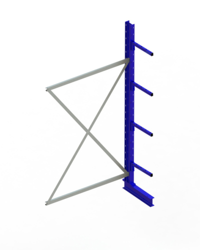 Die wichtigsten Maße des META Kragarmregals Multistrong light auf einen Blick:Nutzung einseitig - zur Aufstellung an der Wand konzipiert. 5 Lagerebenen. Traglast je Arm 220 kg. Fachhöhen je nach Einsatzzweck und Ihrem Bedarf im Raster von 100 mm verstellbar. Nutztiefe 400 mm. Konstruktion aus Stahl. Ständer in RAL5010 Enzianblau. Kragarme in RAL5010 Enzianblau.