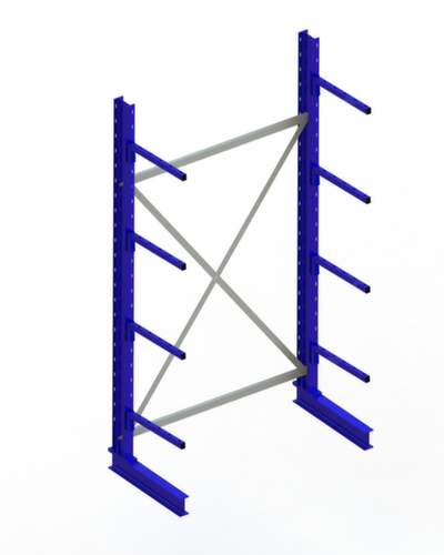 Die wichtigsten Maße des META Kragarmregals Multistrong light auf einen Blick:Nutzung einseitig - zur Aufstellung an der Wand konzipiert. 5 Lagerebenen. Traglast je Arm 175 kg. Fachhöhen je nach Einsatzzweck und Ihrem Bedarf im Raster von 100 mm verstellbar. Nutztiefe 500 mm. Konstruktion aus Stahl. Ständer in RAL5010 Enzianblau. Kragarme in RAL5010 Enzianblau.