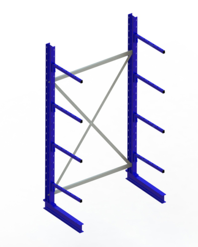 Die wichtigsten Maße des META Kragarmregals Multistrong light auf einen Blick:Nutzung einseitig - zur Aufstellung an der Wand konzipiert. 5 Lagerebenen. Traglast je Arm 140 kg. Fachhöhen je nach Einsatzzweck und Ihrem Bedarf im Raster von 100 mm verstellbar. Nutztiefe 600 mm. Konstruktion aus Stahl. Ständer in RAL5010 Enzianblau. Kragarme in RAL5010 Enzianblau.