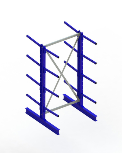 Die wichtigsten Maße des META Kragarmregals Multistrong light auf einen Blick:Nutzung beidseitig - flexible Aufstellung frei im Raum möglich. 5 Lagerebenen. Traglast je Arm 175 kg. Fachhöhen je nach Einsatzzweck und Ihrem Bedarf im Raster von 100 mm verstellbar. Nutztiefe 500 mm. Konstruktion aus Stahl. Ständer in RAL5010 Enzianblau. Kragarme in RAL5010 Enzianblau.
