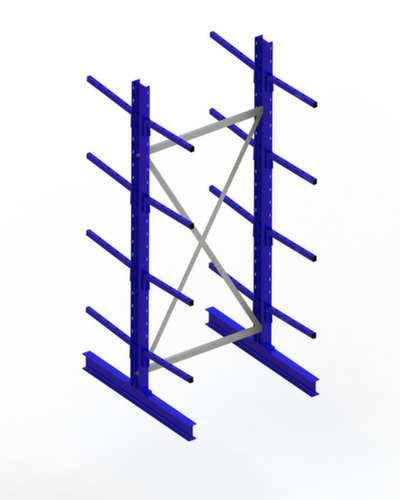 Die wichtigsten Maße des META Kragarmregals Multistrong light auf einen Blick:Nutzung beidseitig - flexible Aufstellung frei im Raum möglich. 5 Lagerebenen. Traglast je Arm 175 kg. Fachhöhen je nach Einsatzzweck und Ihrem Bedarf im Raster von 100 mm verstellbar. Nutztiefe 500 mm. Konstruktion aus Stahl. Ständer in RAL5010 Enzianblau. Kragarme in RAL5010 Enzianblau.
