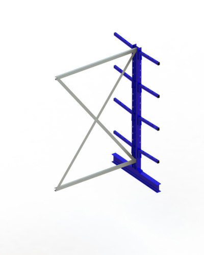 Die wichtigsten Maße des META Kragarmregals Multistrong light auf einen Blick:Nutzung beidseitig - flexible Aufstellung frei im Raum möglich. 5 Lagerebenen. Traglast je Arm 220 kg. Fachhöhen je nach Einsatzzweck und Ihrem Bedarf im Raster von 100 mm verstellbar. Nutztiefe 400 mm. Konstruktion aus Stahl. Ständer in RAL5010 Enzianblau. Kragarme in RAL5010 Enzianblau.