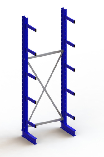 Die wichtigsten Maße des META Kragarmregals Multistrong medium auf einen Blick:Nutzung einseitig - zur Aufstellung an der Wand konzipiert. 6 Lagerebenen. Traglast je Arm 535 kg. Fachhöhen je nach Einsatzzweck und Ihrem Bedarf im Raster von 100 mm verstellbar. Nutztiefe 400 mm. Konstruktion aus Stahl. Ständer in RAL5010 Enzianblau. Kragarme in RAL5010 Enzianblau.