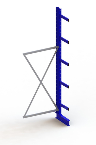 Die wichtigsten Maße des META Kragarmregals Multistrong medium auf einen Blick:Nutzung einseitig - zur Aufstellung an der Wand konzipiert. 6 Lagerebenen. Traglast je Arm 535 kg. Fachhöhen je nach Einsatzzweck und Ihrem Bedarf im Raster von 100 mm verstellbar. Nutztiefe 400 mm. Konstruktion aus Stahl. Ständer in RAL5010 Enzianblau. Kragarme in RAL5010 Enzianblau.