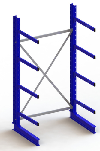 Die wichtigsten Maße des META Kragarmregals Multistrong medium auf einen Blick:Nutzung einseitig - zur Aufstellung an der Wand konzipiert. 5 Lagerebenen. Traglast je Arm 250 kg. Fachhöhen je nach Einsatzzweck und Ihrem Bedarf im Raster von 100 mm verstellbar. Nutztiefe 800 mm. Konstruktion aus Stahl. Ständer in RAL5010 Enzianblau. Kragarme in RAL5010 Enzianblau.