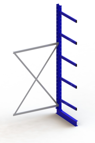 Die wichtigsten Maße des META Kragarmregals Multistrong medium auf einen Blick:Nutzung einseitig - zur Aufstellung an der Wand konzipiert. 5 Lagerebenen. Traglast je Arm 250 kg. Fachhöhen je nach Einsatzzweck und Ihrem Bedarf im Raster von 100 mm verstellbar. Nutztiefe 800 mm. Konstruktion aus Stahl. Ständer in RAL5010 Enzianblau. Kragarme in RAL5010 Enzianblau.