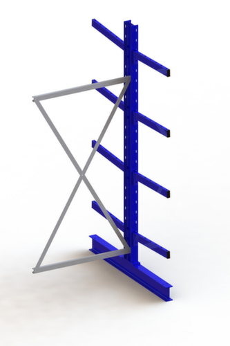 Die wichtigsten Maße des META Kragarmregals Multistrong medium auf einen Blick:Nutzung beidseitig - flexible Aufstellung frei im Raum möglich. 5 Lagerebenen. Traglast je Arm 355 kg. Fachhöhen je nach Einsatzzweck und Ihrem Bedarf im Raster von 100 mm verstellbar. Nutztiefe 600 mm. Konstruktion aus Stahl. Ständer in RAL5010 Enzianblau. Kragarme in RAL5010 Enzianblau.