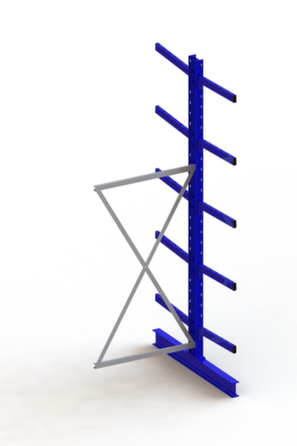 Die wichtigsten Maße des META Kragarmregals Multistrong medium auf einen Blick:Nutzung beidseitig - flexible Aufstellung frei im Raum möglich. 5 Lagerebenen. Traglast je Arm 355 kg. Fachhöhen je nach Einsatzzweck und Ihrem Bedarf im Raster von 100 mm verstellbar. Nutztiefe 600 mm. Konstruktion aus Stahl. Ständer in RAL5010 Enzianblau. Kragarme in RAL5010 Enzianblau.