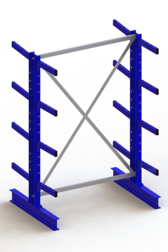 Die wichtigsten Maße des META Kragarmregals Multistrong medium auf einen Blick:Nutzung beidseitig - flexible Aufstellung frei im Raum möglich. 5 Lagerebenen. Traglast je Arm 535 kg. Fachhöhen je nach Einsatzzweck und Ihrem Bedarf im Raster von 100 mm verstellbar. Nutztiefe 400 mm. Konstruktion aus Stahl. Ständer in RAL5010 Enzianblau. Kragarme in RAL5010 Enzianblau.