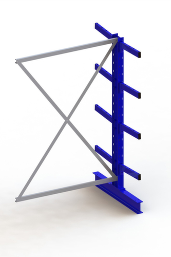 Die wichtigsten Maße des META Kragarmregals Multistrong medium auf einen Blick:Nutzung beidseitig - flexible Aufstellung frei im Raum möglich. 5 Lagerebenen. Traglast je Arm 535 kg. Fachhöhen je nach Einsatzzweck und Ihrem Bedarf im Raster von 100 mm verstellbar. Nutztiefe 400 mm. Konstruktion aus Stahl. Ständer in RAL5010 Enzianblau. Kragarme in RAL5010 Enzianblau.