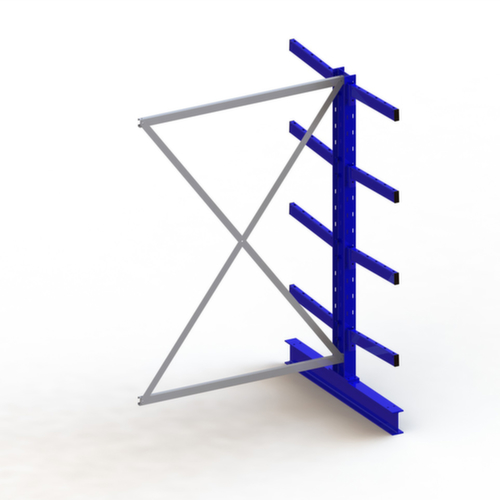 Die wichtigsten Maße des META Kragarmregals Multistrong medium auf einen Blick:Nutzung beidseitig - flexible Aufstellung frei im Raum möglich. 5 Lagerebenen. Traglast je Arm 430 kg. Fachhöhen je nach Einsatzzweck und Ihrem Bedarf im Raster von 100 mm verstellbar. Nutztiefe 500 mm. Konstruktion aus Stahl. Ständer in RAL5010 Enzianblau. Kragarme in RAL5010 Enzianblau.