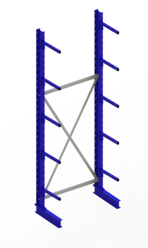 Die wichtigsten Maße des META Kragarmregals Multistrong light auf einen Blick:Nutzung einseitig - zur Aufstellung an der Wand konzipiert. 6 Lagerebenen. Traglast je Arm 220 kg. Fachhöhen je nach Einsatzzweck und Ihrem Bedarf im Raster von 100 mm verstellbar. Nutztiefe 400 mm. Konstruktion aus Stahl. Ständer in RAL5010 Enzianblau. Kragarme in RAL5010 Enzianblau.