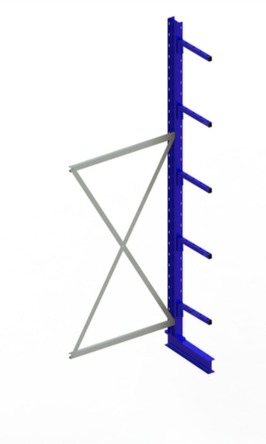 Die wichtigsten Maße des META Kragarmregals Multistrong light auf einen Blick:Nutzung einseitig - zur Aufstellung an der Wand konzipiert. 6 Lagerebenen. Traglast je Arm 220 kg. Fachhöhen je nach Einsatzzweck und Ihrem Bedarf im Raster von 100 mm verstellbar. Nutztiefe 400 mm. Konstruktion aus Stahl. Ständer in RAL5010 Enzianblau. Kragarme in RAL5010 Enzianblau.