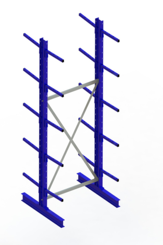 Die wichtigsten Maße des META Kragarmregals Multistrong light auf einen Blick:Nutzung beidseitig - flexible Aufstellung frei im Raum möglich. 6 Lagerebenen. Traglast je Arm 220 kg. Fachhöhen je nach Einsatzzweck und Ihrem Bedarf im Raster von 100 mm verstellbar. Nutztiefe 400 mm. Konstruktion aus Stahl. Ständer in RAL5010 Enzianblau. Kragarme in RAL5010 Enzianblau.
