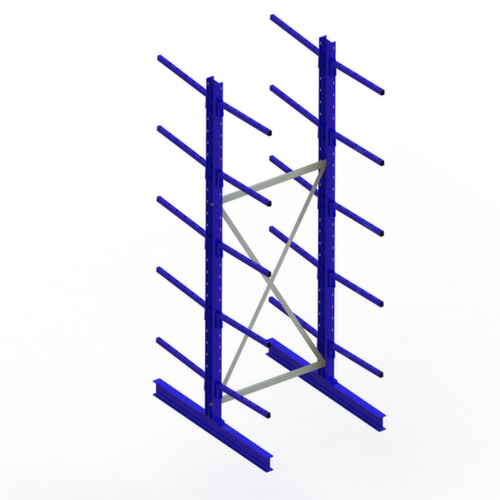 Die wichtigsten Maße des META Kragarmregals Multistrong light auf einen Blick:Nutzung beidseitig - flexible Aufstellung frei im Raum möglich. 6 Lagerebenen. Traglast je Arm 140 kg. Fachhöhen je nach Einsatzzweck und Ihrem Bedarf im Raster von 100 mm verstellbar. Nutztiefe 600 mm. Konstruktion aus Stahl. Ständer in RAL5010 Enzianblau. Kragarme in RAL5010 Enzianblau.