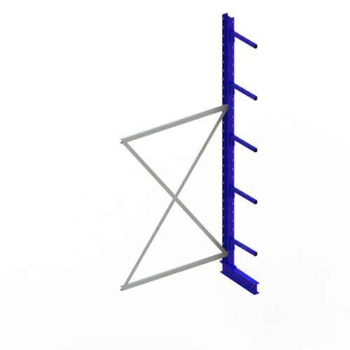 Die wichtigsten Maße des META Kragarmregals Multistrong light auf einen Blick:Nutzung einseitig - zur Aufstellung an der Wand konzipiert. 6 Lagerebenen. Traglast je Arm 220 kg. Fachhöhen je nach Einsatzzweck und Ihrem Bedarf im Raster von 100 mm verstellbar. Nutztiefe 400 mm. Konstruktion aus Stahl. Ständer in RAL5010 Enzianblau. Kragarme in RAL5010 Enzianblau.