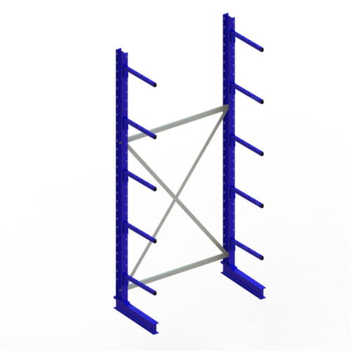 Die wichtigsten Maße des META Kragarmregals Multistrong light auf einen Blick:Nutzung einseitig - zur Aufstellung an der Wand konzipiert. 6 Lagerebenen. Traglast je Arm 175 kg. Fachhöhen je nach Einsatzzweck und Ihrem Bedarf im Raster von 100 mm verstellbar. Nutztiefe 500 mm. Konstruktion aus Stahl. Ständer in RAL5010 Enzianblau. Kragarme in RAL5010 Enzianblau.