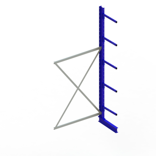 Die wichtigsten Maße des META Kragarmregals Multistrong light auf einen Blick:Nutzung einseitig - zur Aufstellung an der Wand konzipiert. 6 Lagerebenen. Traglast je Arm 175 kg. Fachhöhen je nach Einsatzzweck und Ihrem Bedarf im Raster von 100 mm verstellbar. Nutztiefe 500 mm. Konstruktion aus Stahl. Ständer in RAL5010 Enzianblau. Kragarme in RAL5010 Enzianblau.