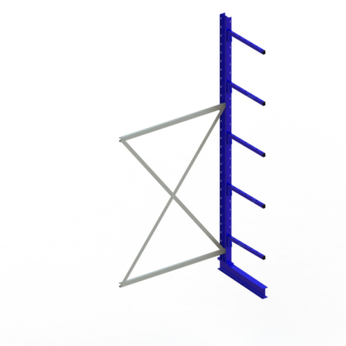 Die wichtigsten Maße des META Kragarmregals Multistrong light auf einen Blick:Nutzung einseitig - zur Aufstellung an der Wand konzipiert. 6 Lagerebenen. Traglast je Arm 140 kg. Fachhöhen je nach Einsatzzweck und Ihrem Bedarf im Raster von 100 mm verstellbar. Nutztiefe 600 mm. Konstruktion aus Stahl. Ständer in RAL5010 Enzianblau. Kragarme in RAL5010 Enzianblau.