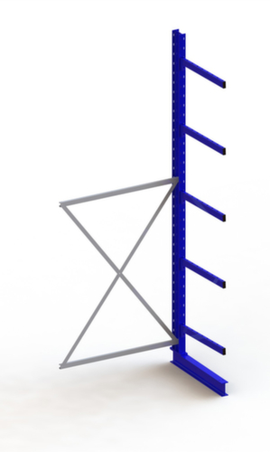 Die wichtigsten Maße des META Kragarmregals Multistrong medium auf einen Blick:Nutzung einseitig - zur Aufstellung an der Wand konzipiert. 6 Lagerebenen. Traglast je Arm 250 kg. Fachhöhen je nach Einsatzzweck und Ihrem Bedarf im Raster von 100 mm verstellbar. Nutztiefe 800 mm. Konstruktion aus Stahl. Ständer in RAL5010 Enzianblau. Kragarme in RAL5010 Enzianblau.