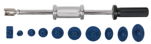 "longDescription": "<ul><li class=\"liste\">geeignet zur Reparatur von kleinen Dellen oder Beulen</li><li class=\"liste\">keine Spachtel- oder Lackierarbeiten</li><li class=\"liste\">ermöglicht federndes Herausziehen der Delle und sorgt für beste Ergebnisse</li><li class=\"liste\">inklusive kleinem Gleithammer</li><li class=\"liste\">mit 10 verschiedenen Ausbeulpads</li></ul><br><br><strong>Enthaltene Teile:</strong><br>- 1 x Gleithammer<br>- 1 x Klebestück rund, flach, Ø 40 mm<br>- 1 x Klebestück rund, flach, Ø 35 mm<br>- 1 x Klebestück rund, flach, Ø 32 mm<br>- 1 x Klebestück sphärisch, rund, Ø 25 mm<br>- 1 x Klebestück sphärisch, rund, Ø 20 mm<br>- 1 x Klebestück sphärisch, rund, Ø 15 mm<br>- 1 x Klebestück elliptisch, flach, 48 x 33 mm<br>- 1 x Klebestück elliptisch, flach, 40 x 27 mm<br>- 1 x Klebestück elliptisch, flach, 33 x 22 mm<br>- 1 x Klebestück rechteckig, 32 x 17 mm<br>",