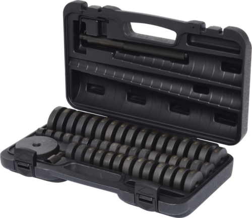 "longDescription": "<ul><li class=\"liste\">universal einsetzbares Sortiment</li><li class=\"liste\">Betätigung wahlweise manuell mit Hammer oder Werkstattpresse</li><li class=\"liste\">Arbeitsbereich von 18,0 - 65,0mm</li><li class=\"liste\">Aufnahmeadapter für zwei Druckplatten geeignet</li><li class=\"liste\">Spezial-Werkzeugstahl</li><li class=\"liste\">in stabilem Kunststoffkoffer</li></ul><br><br><strong>Enthaltene Teile:</strong><br>- 1 x Aufnahmeadapter, 45mm<br>- 1 x Austreibdorn mit Rändelung, 220mm<br>- 1 x Druckplatte, 18mm<br>- 1 x Druckplatte, 19mm<br>- 1 x Druckplatte, 20mm<br>- 1 x Druckplatte, 21mm<br>- 1 x Druckplatte, 22mm<br>- 1 x Druckplatte, 23mm<br>- 1 x Druckplatte, 24mm<br>- 1 x Druckplatte, 25mm<br>- 1 x Druckplatte, 26mm<br>- 1 x Druckplatte, 27mm<br>- 1 x Druckplatte, 28mm<br>- 1 x Druckplatte, 29mm<br>- 1 x Druckplatte, 30mm<br>- 1 x Druckplatte, 31mm<br>- 1 x Druckplatte, 32mm<br>- 1 x Druckplatte, 33mm<br>- 1 x Druckplatte, 34mm<br>- 1 x Druckplatte, 35mm<br>- 1 x Druckplatte, 36mm<br>- 1 x Druckplatte, 37mm<br>- 1 x Druckplatte, 38mm<br>- 1 x Druckplatte, 39mm<br>- 1 x Druckplatte, 40mm<br>- 1 x Druckplatte, 41mm<br>- 1 x Druckplatte, 42mm<br>- 1 x Druckplatte, 43mm<br>- 1 x Druckplatte, 44mm<br>- 1 x Druckplatte, 45mm<br>- 1 x Druckplatte, 46mm<br>- 1 x Druckplatte, 47mm<br>- 1 x Druckplatte, 48mm<br>- 1 x Druckplatte, 49mm<br>- 1 x Druckplatte, 50mm<br>- 1 x Druckplatte, 51mm<br>- 1 x Druckplatte, 52mm<br>- 1 x Druckplatte, 53mm<br>- 1 x Druckplatte, 54mm<br>- 1 x Druckplatte, 55mm<br>- 1 x Druckplatte, 56mm<br>- 1 x Druckplatte, 57mm<br>- 1 x Druckplatte, 58mm<br>- 1 x Druckplatte, 59mm<br>- 1 x Druckplatte, 60mm<br>- 1 x Druckplatte, 61mm<br>- 1 x Druckplatte, 62mm<br>- 1 x Druckplatte, 63mm<br>- 1 x Druckplatte, 64mm<br>- 1 x Druckplatte, 65mm<br>- 1 x Stützplatte, 74mm<br>",